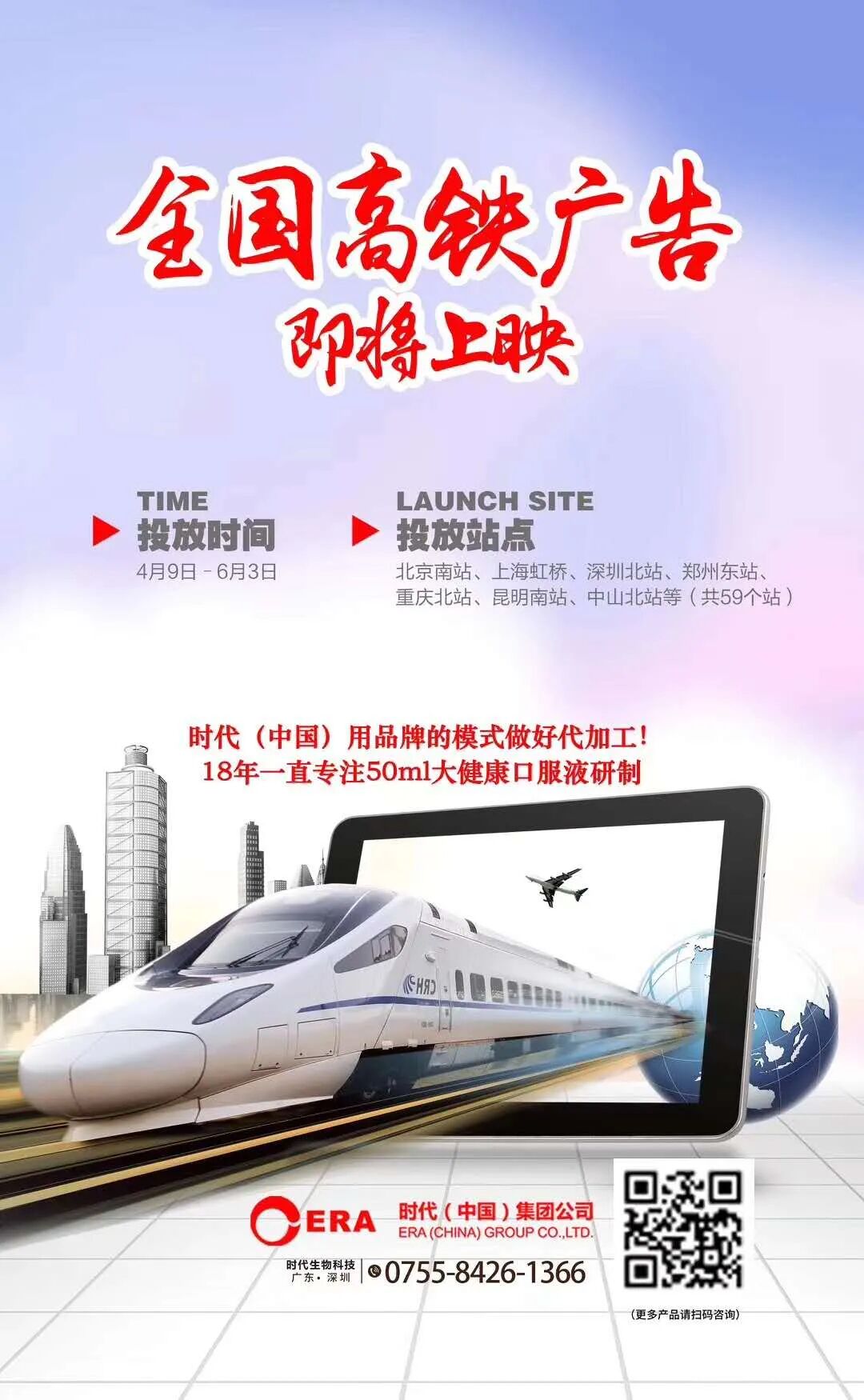 4月9日,好普集团旗下时代(中国)集团斥巨资联合全国各地高铁站点,开启60天全国高铁广告霸屏模式,横扫北京、上海、石家庄、郑州、长沙、重庆、贵阳、广州、深圳、珠海等49个城市。在万众期待中,准时相约,与您共同前行。