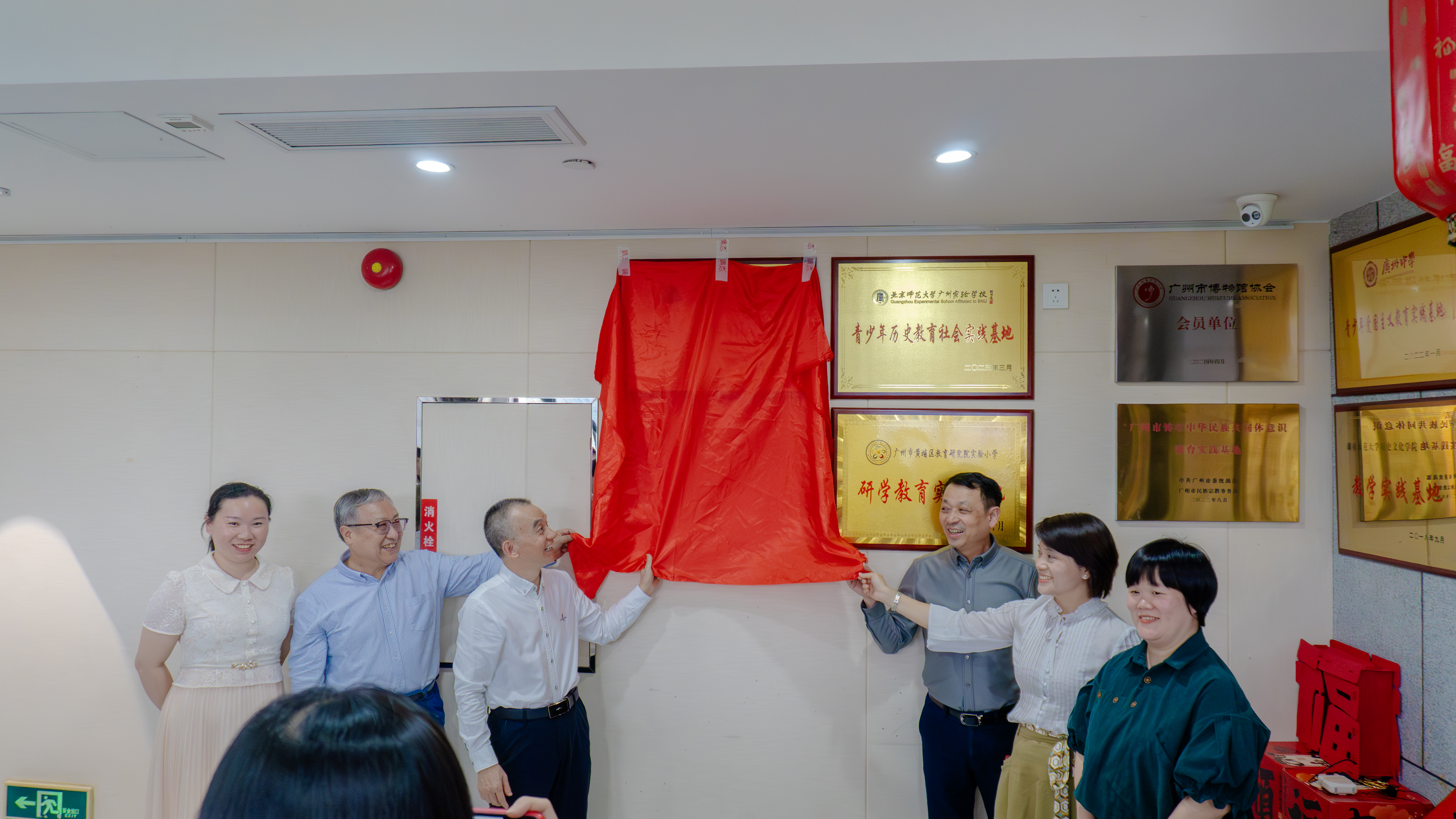 最激动人心的时刻如期而至,双方代表上台,共同为“广州天省实验学校青少年历史文化教育实践基地”揭牌。红绸落下,牌匾熠熠生辉,现场掌声雷动,定格下馆校协同育人的重要瞬间,也标志着实践基地正式投入使用。