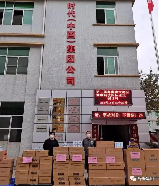 2月8日元宵节当日,好普集团旗下时代(中国)捐赠第一批自主研发的营养系列食品防疫物资。