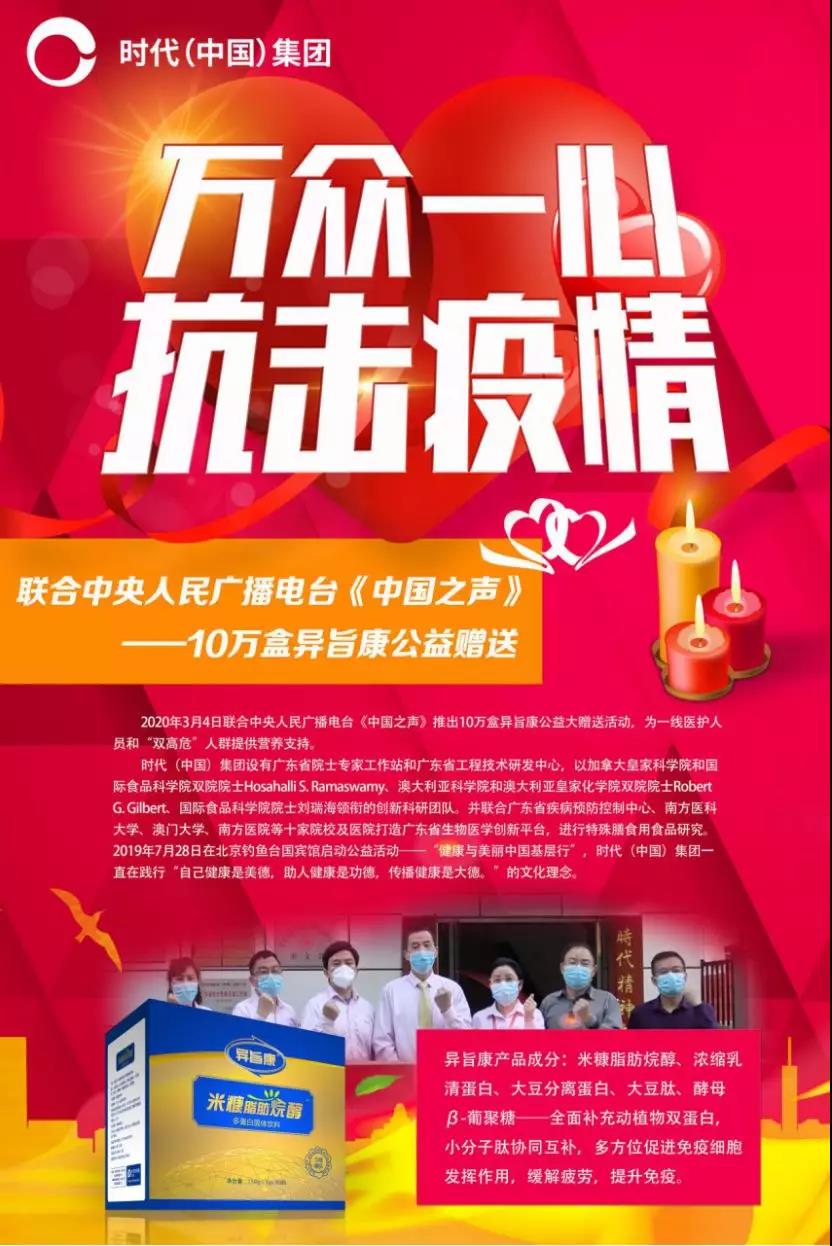 3月1日,好普集团旗下时代(中国)联合中央人民广播电台《中国之声》启动向新冠肺炎"双高危"(高危地区、高危人群)人群捐赠10万盒特膳食品活动。