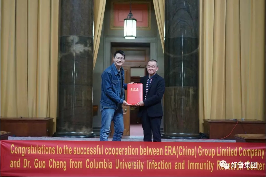 好普集团董事长颜盛繁先生为哥伦比亚大学高级生物信息研究员郭城博士颁发医学顾问聘书