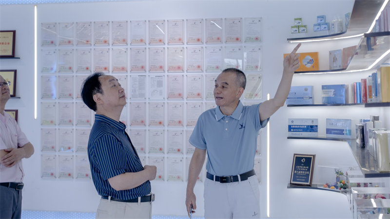 在颜董事长陪同下,吴院士一行依次参观了好普艺术博物馆、产品中心及中药标本区。产品中心集中展示了集团以多肽技术为路径开发的功能性食品、特膳饮品;标本区展示的部分植物性、动物性和矿物质中药材,共108种。吴院士表示“文化可见,数据可溯”,对集团将传统药材与现代工艺相结合的研发路线给予了高度评价。