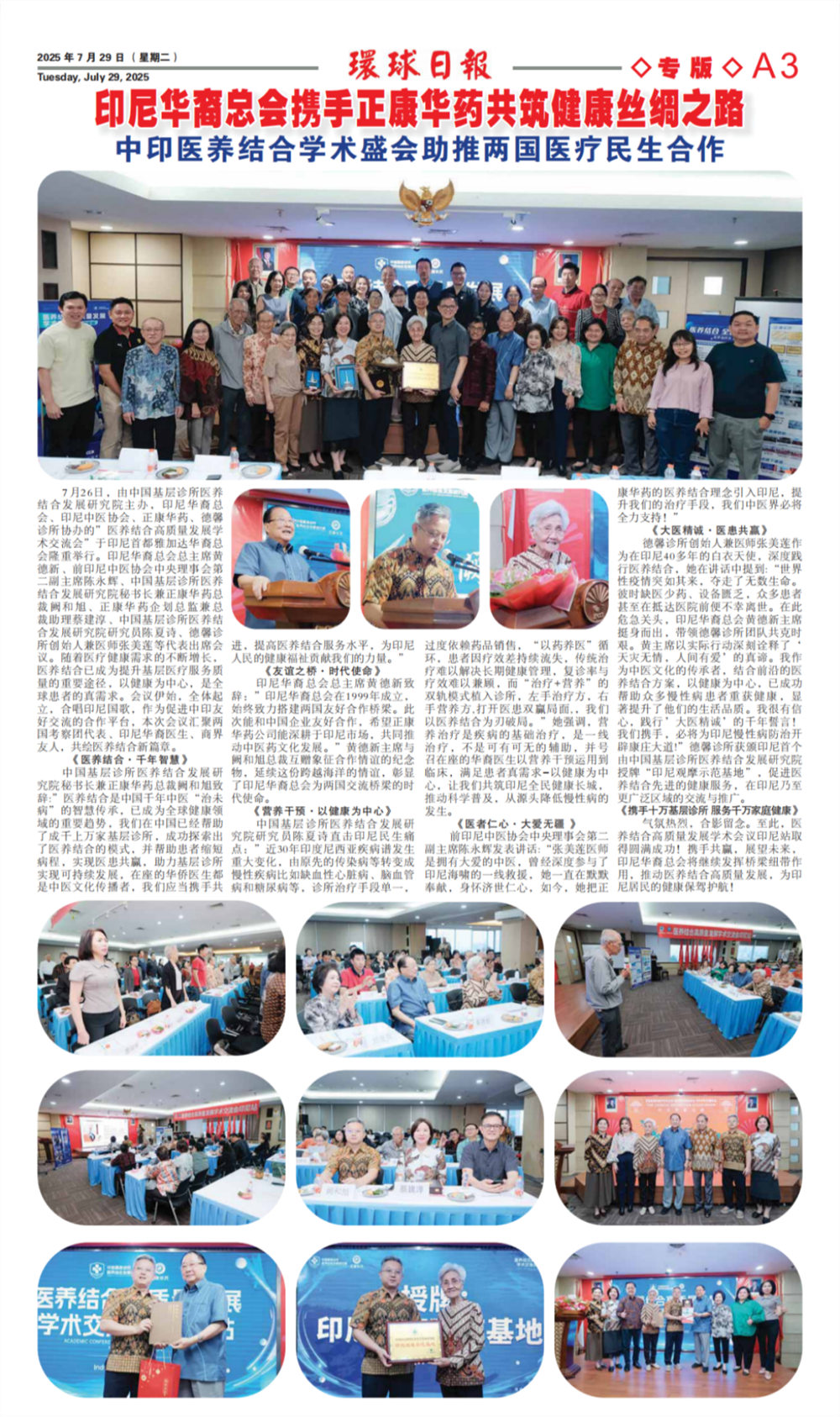 本次活动被印尼官方媒体《环球日报》A3版面整版大篇幅报道,它不仅是中医界交流合作的重要契机,更得到了官方层面的高度认可,是中印两国医疗民生合作的里程碑。