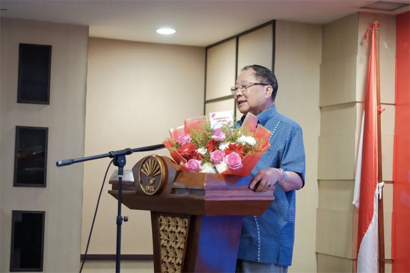 德馨诊所创始人兼医师张美莲作为在印尼40多年的白衣天使,深度践行医养结合,她在讲话中提到:世界性疫情突如其来,夺走了无数生命。彼时缺医少药、设备匮乏,众多患者甚至在抵达医院前便不幸离世。在此危急关头,印尼华裔总会黄德新主席挺身而出,带领德馨诊所团队共克时艰。黄主席以实际行动深刻诠释了‘天灾无情,人间有爱’的真谛。