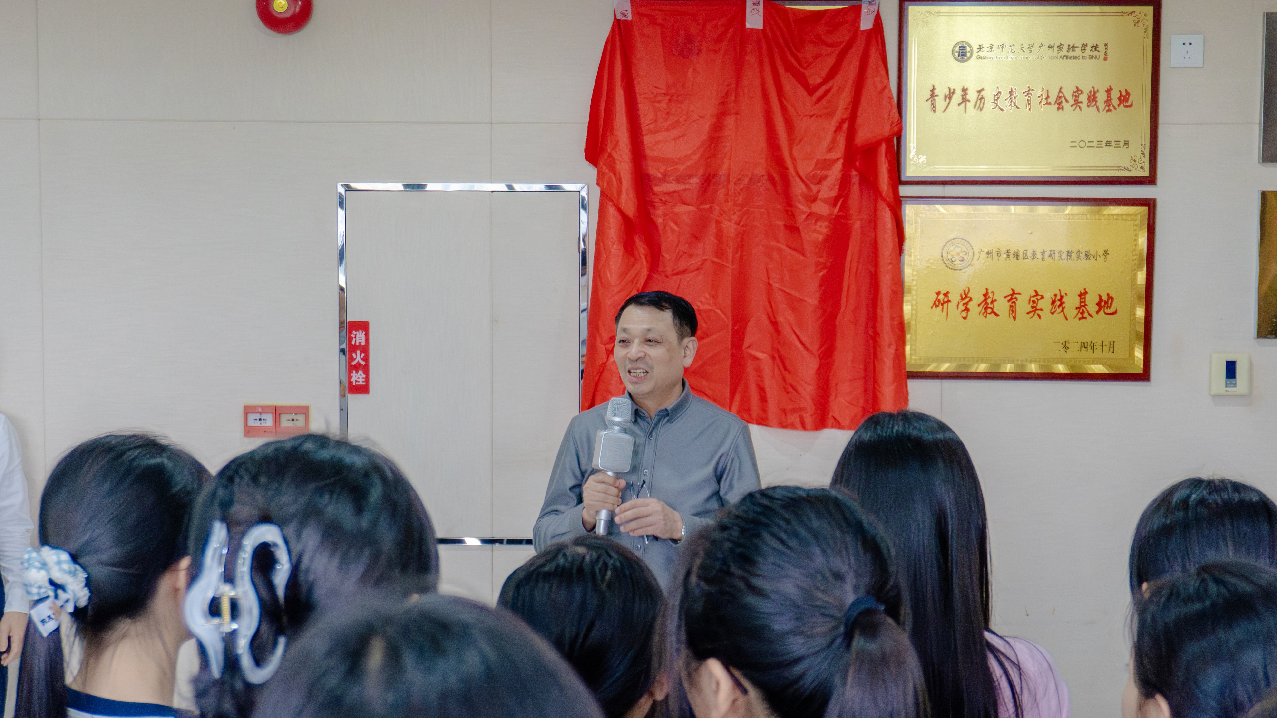 最激动人心的时刻如期而至,双方代表上台,共同为“广州天省实验学校青少年历史文化教育实践基地”揭牌。红绸落下,牌匾熠熠生辉,现场掌声雷动,定格下馆校协同育人的重要瞬间,也标志着实践基地正式投入使用。