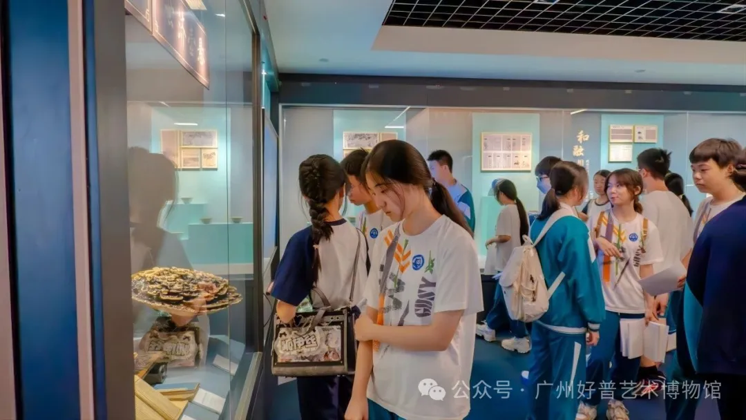 揭牌仪式结束后,学子们开启了充实的研学参观之旅,分为两个环节有序开展。首先,学生在博物馆讲解员的带领下,参观广州好普艺术博物馆,讲解员结合青少年认知特点,生动讲解馆藏文物的历史背景与文化内涵,引导学子近距离感受历史魅力、感悟文化底蕴,同学们认真聆听、积极提问,在实践中积累知识、收获成长。