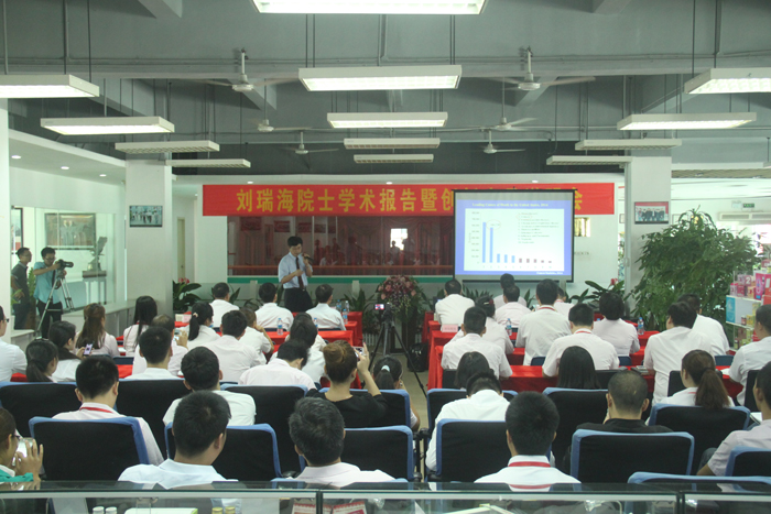 10月13日,刘瑞海院士学术报告暨创新产品说明会在位于深圳龙岗东海科技园的时代(中国)有限公司举行,湖南邵阳新闻采访团全程进行专题采访。全球食品顶尖科学家、国际食品科学院院士、美国康奈尓大学食品营养学终身教授、广东省领军人才、时代(中国)有限公司首席科学家、广东食品与生命健康研究院院长刘瑞海博士,华南理工大学轻工与食品学院郑必胜、陈健副教授等食品专家,颜盛繁、蒋泽根、梁新锋、周乐玲、阙和旭、于勤立、钟长庚、李少飞、邹干武、殷腊生等广东好普集团、时代(中国)有限公司领导出席活动。